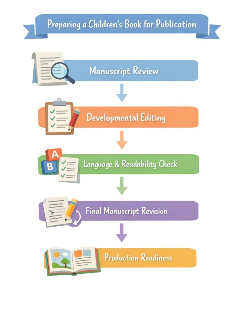 Before illustration or production begins, the manuscript should undergo structural editing to refine story clarity and narrative flow.