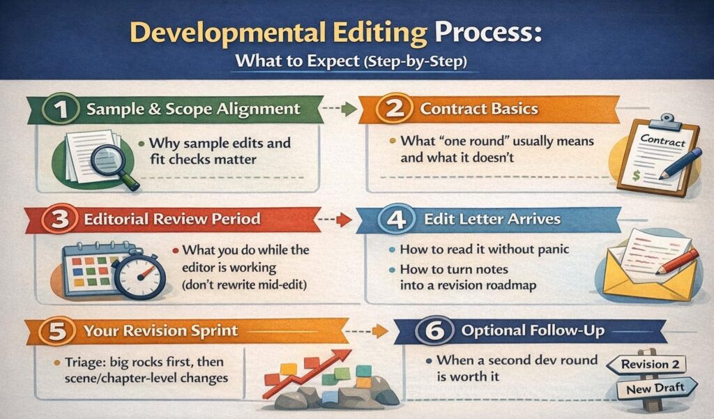 Knowing how the process unfolds removes a lot of anxiety. Developmental editing is not a mystery. It follows a clear sequence, and each step has a purpose.