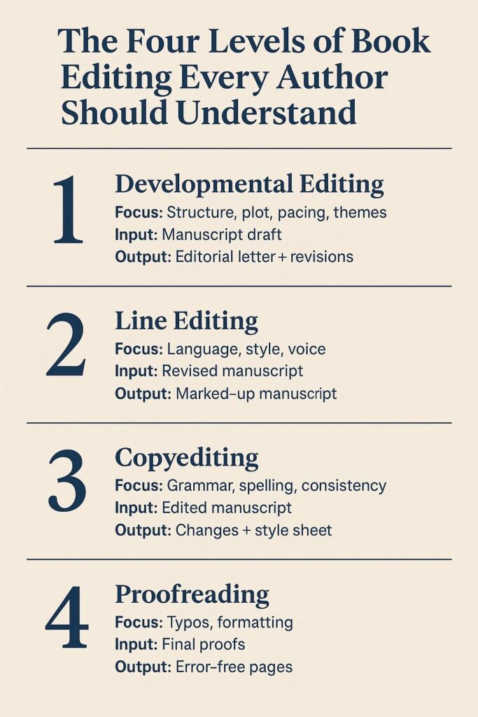 Skipping levels often leads to frustration. For example, if you go straight to proofreading when your chapters are still shaky, you will end up paying for corrections that become irrelevant once you rewrite. If you try to copyedit before line editing, you may polish sentences that later get rephrased for flow and voice.