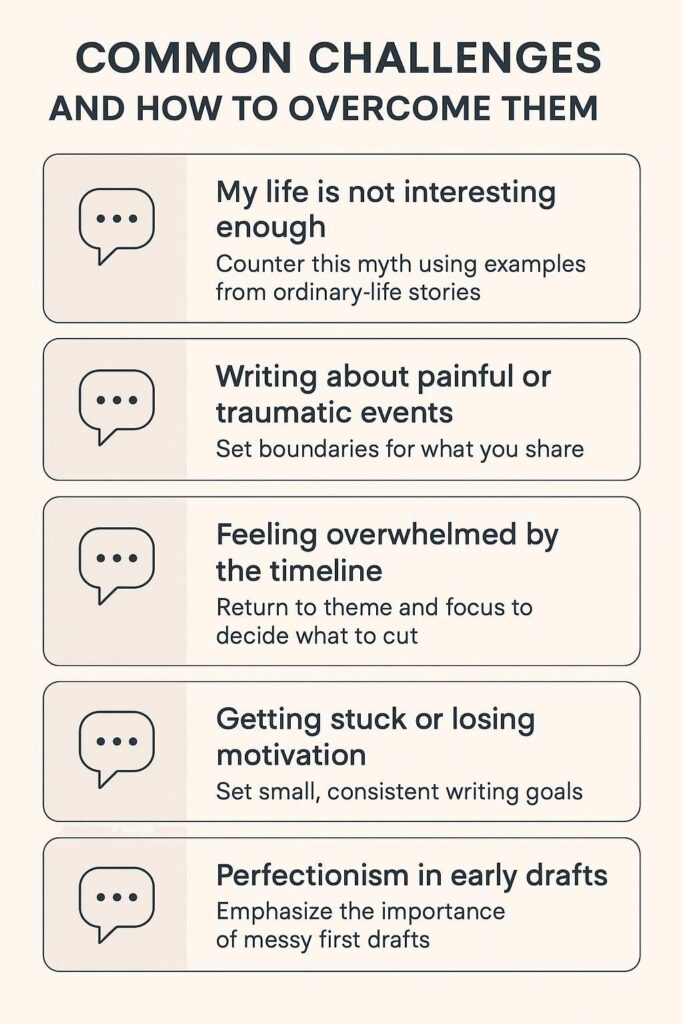 Every writer reaches a point where the process feels heavier than expected. Writing your life story is emotional, vulnerable, and sometimes confusing, so it is natural to run into challenges. The good news is that most of these challenges are predictable, and once you understand them, you can move through them with more confidence and less stress. This section is longer than 400 words so you can explore each challenge in depth and learn exactly how to navigate it.