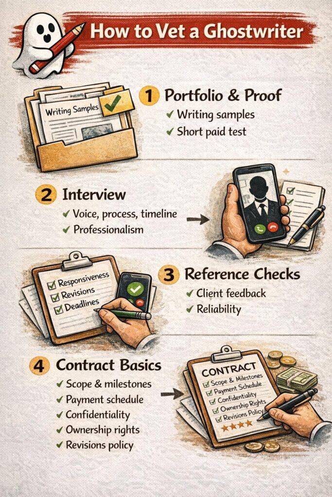 This is where a simple ghostwriter vetting checklist can save you. Not a complicated system. Just clear questions, written answers, and a willingness to walk away if something does not add up.